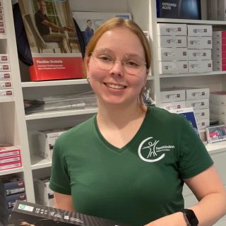 In unserem Sanitätshaus ist Lea die kompetente Ansprechpartnerin für Kompressionsversorgungen. Darüber hinaus verfügt sie über umfassende Fachkenntnisse im Bereich Einlagenversorgung und Bandagen. Mit viel Erfahrung begleitet sie unsere Kundinnen und Kunden von der ersten Maßnahme über den Rezeptvorschlag bis hin zur individuellen Anpassung und Abgabe. So stellt Lea sicher, dass jede Versorgungoptimal auf die persönlichen Bedürfnisse abgestimmt ist.